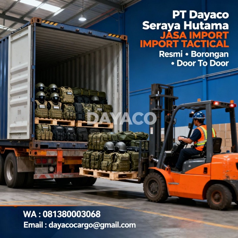 Apakah Anda mencari solusi import peralatan tactical terpercaya dan aman ke Indonesia? PT Dayaco Seraya Hutama siap membantu! Kami menyediakan layanan import door-to-door, mulai dari pengurusan dokumen, custom clearance, hingga pengiriman langsung ke lokasi Anda.